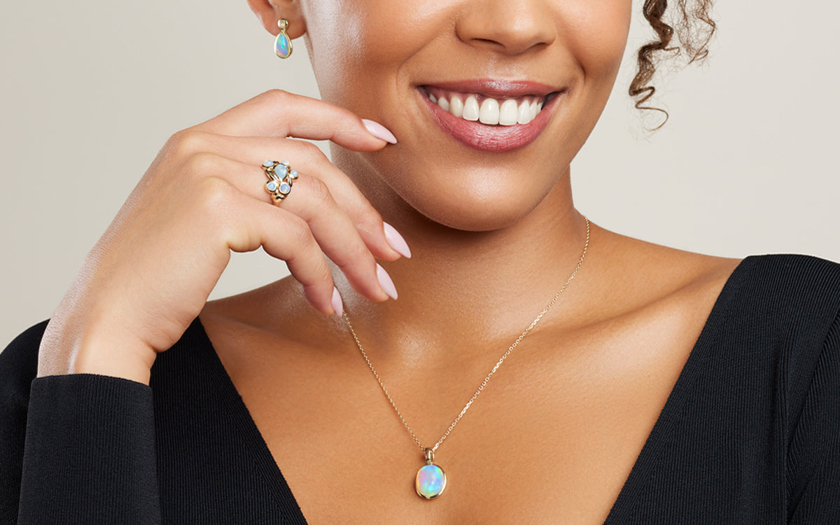Entdecken Sie den Zauber der Kristallopale. Jedes Schmuckstück fängt die faszinierende Farbpracht dieser Edelsteine ein. Tauchen Sie ein in eine Welt voller Regenbogenfarben, die Ihren Stil und Ihre Persönlichkeit zum Strahlen bringen. Von Ringen bis zu Clip-Anhängern – erleben Sie die Magie des Regenbogens in unserer einzigartigen Kollektion.